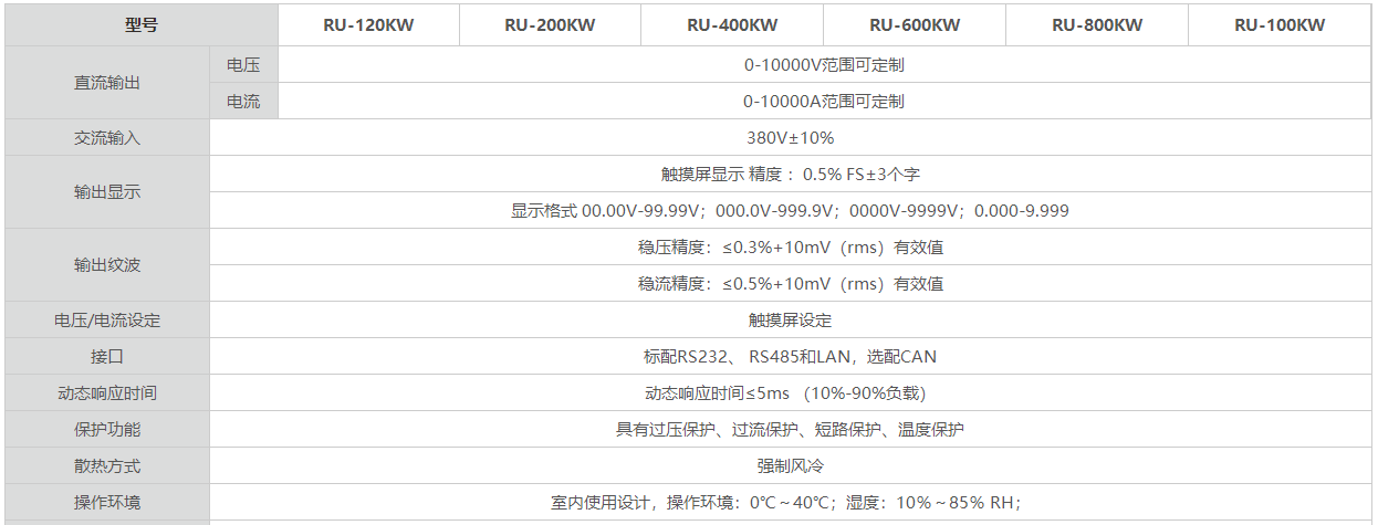 大功率直流电源系列直流由高效芯片控制,采用IGBT模块调整模式,单机功率30KW-1000KW,电压范围0-10000V,0-10000A可根据客户需求定制,具体高效能、高精度、高稳定性等特性,配备多种辅助功能,让用户使用更方便、可靠。主要应用于科研单位、实验室和电子产线等需要高效电源测试时使用。